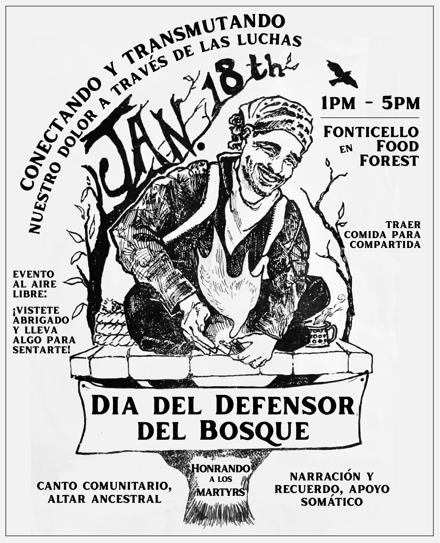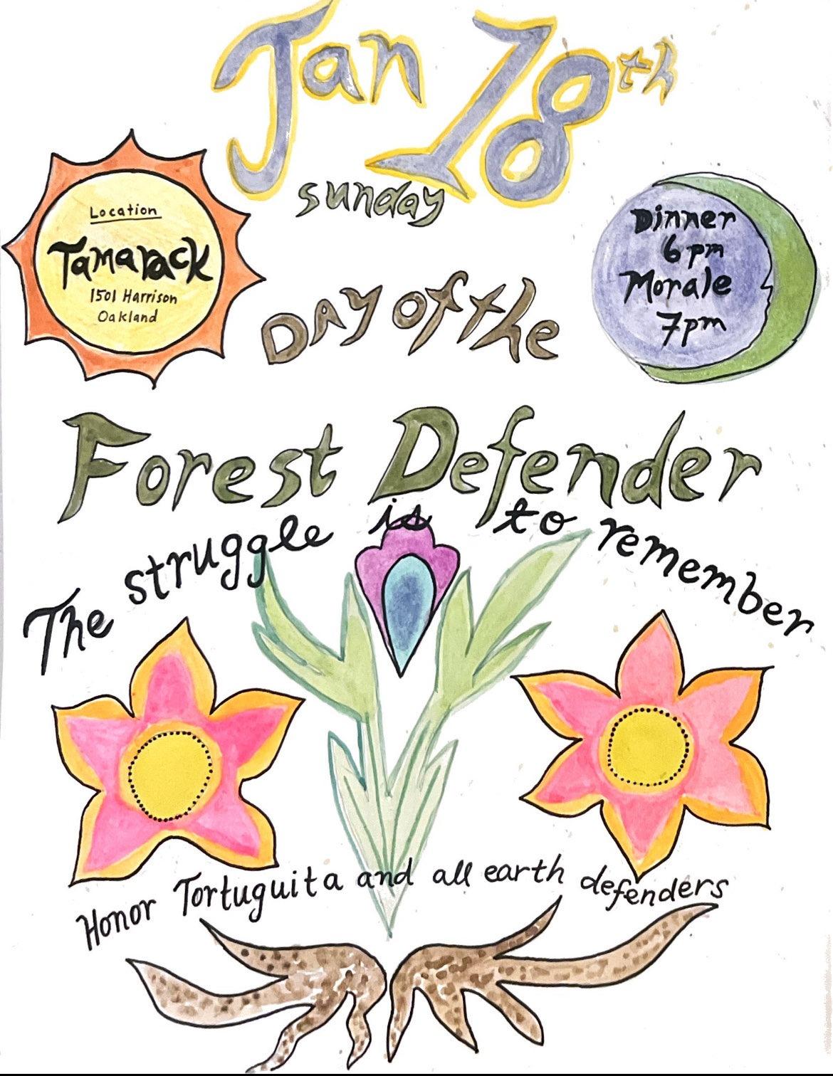 今年1月18日、トルトゥギータを、そして地球を守るために命を落とした全ての人々を追悼する行動を起こそう。デモ行進・集会・徹夜祭を組織しよう。友人達・同志達・家族で集まり、追悼し、癒し、共により強くなろう。逃亡中の人々・包囲下の人々・監視下にある人々について情報共有会を企画しよう。地元の警察基金・拘置所・監視ネットワークについてパワーマッピング集会を開催しよう。公園や森を通るハイキングを企画し、その場所を破壊から守ることを誓おう。